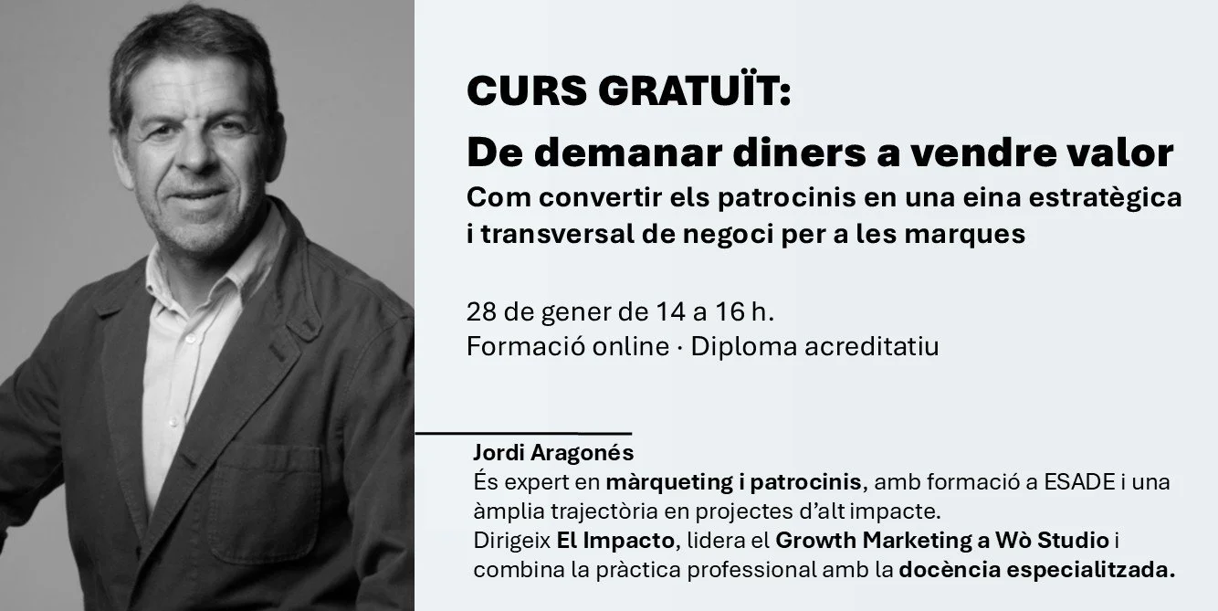 Aquesta formació ofereix les eines necessàries per superar el model tradicional de “demanar patrocinis” i evolucionar cap a un enfocament basat en oferir oportunitats de negoci alineades amb els objectius de les marques.